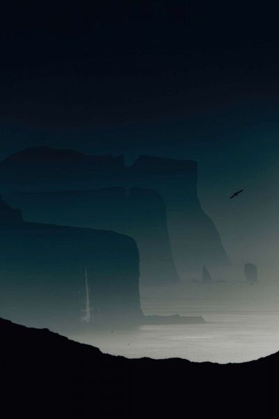 La luz juega aquí un papel protagónico silencioso. Los reflejos en el agua proporcionan un brillo sutil, mientras que los bordes de los acantilados casi se disuelven en la luz diurna brumosa. Este desvanecimiento natural crea un efecto onírico, como si el paisaje estuviera desapareciendo lentamente en la nada. Un diseño perfecto para los amantes de composiciones tranquilas y minimalistas con profundidad.