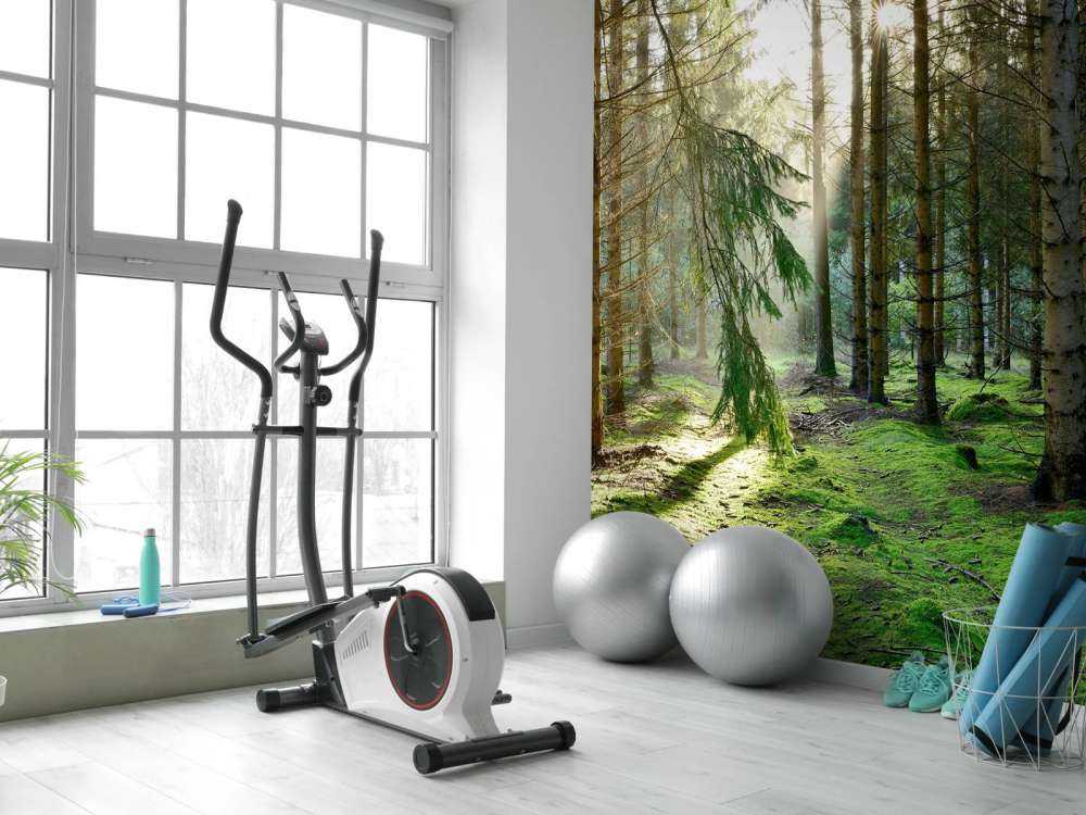 Papel Pintado - Bosque de coníferas al sol de la mañana