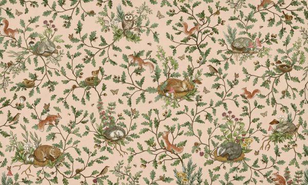 El patrón está ricamente lleno pero estructurado, lo que te permite descubrir constantemente nuevos elementos sin que se sienta abrumador. Cada animal parece contar su propia historia: durmiendo, mirando, escondido o en movimiento. Las ramas de roble proporcionan estructura y unen todos los elementos en un paisaje boscoso armonioso.