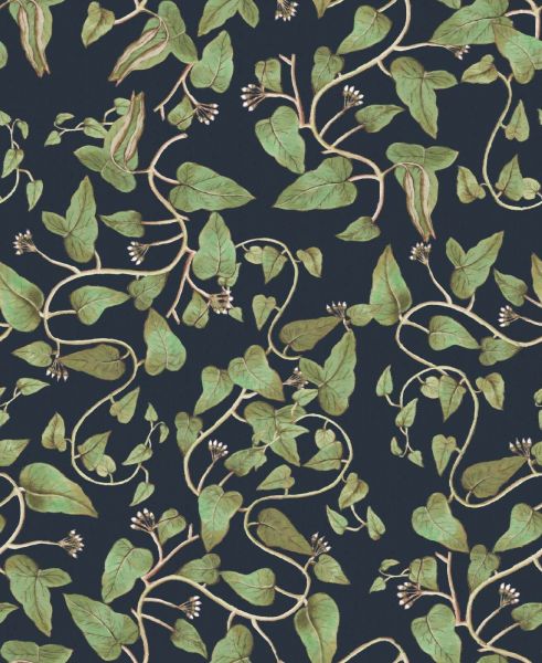 Papel Pintado - Enredaderas de frijoles trepadores sobre azul noche.