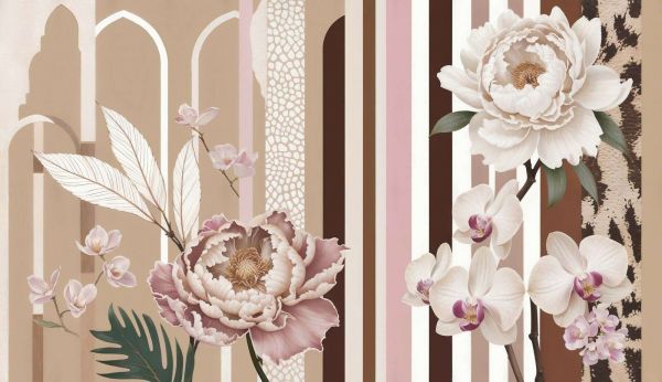 Papel Pintado - Flores con rayas y lazos