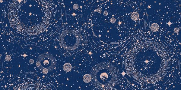 Papel Pintado - Lluvia de planetas en azul medianoche