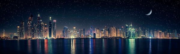 Luz de luna sobre un horizonte reluciente en diferentes materiales