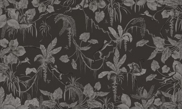 Papel Pintado - Playful Monkeys - Monochrome - Black