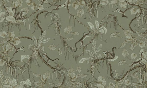 Papel Pintado - Playful Monkeys - Monochrome - Green