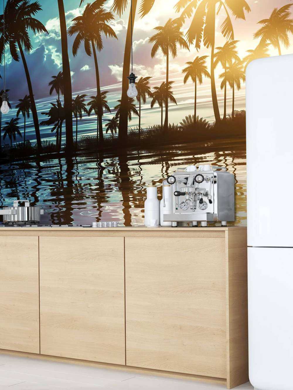Papel Pintado - Paisaje nocturno con palmeras