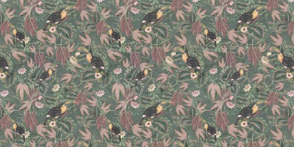 Papel Pintado - Pájaros y tucanes tropicales - verde oscuro