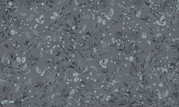 Papel Pintado - Playful Robins - Monochrome - Blue