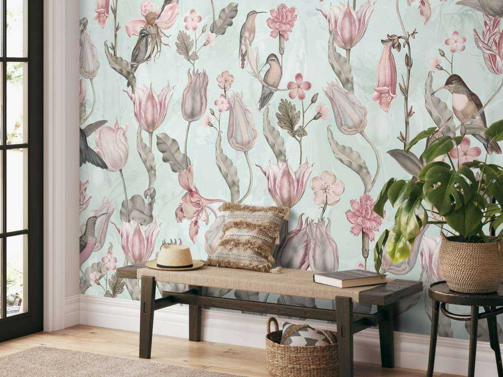 Papel Pintado - Sinfonía de Colibríes de Primavera - Pradera de Menta